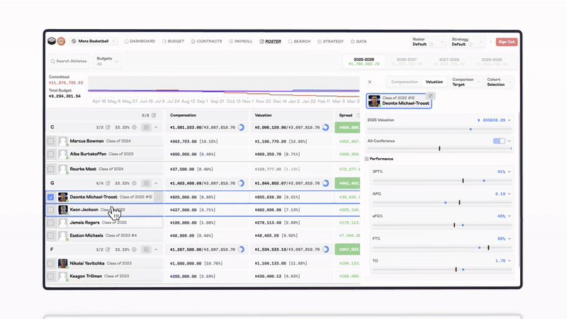- Now, college basketball GMs and DBOs can build their most competitive rosters against budget with Dropback’s tech—built from the ground-up for the new rev-share era.