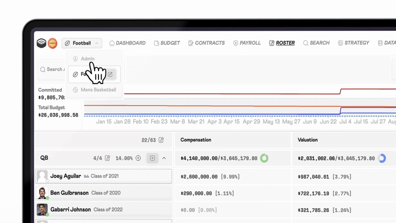 Dropback is pro-grade Front Office tech built for college sports. Since our 2024 public launch, Power 4 football programs have used Dropback’s customizable platform to value athletes, optimize spend, and maximize the off-the-field competitive edge: programs’ athlete compensation budgets (Rev-Share, NIL, Scholarships, Alston, etc.).